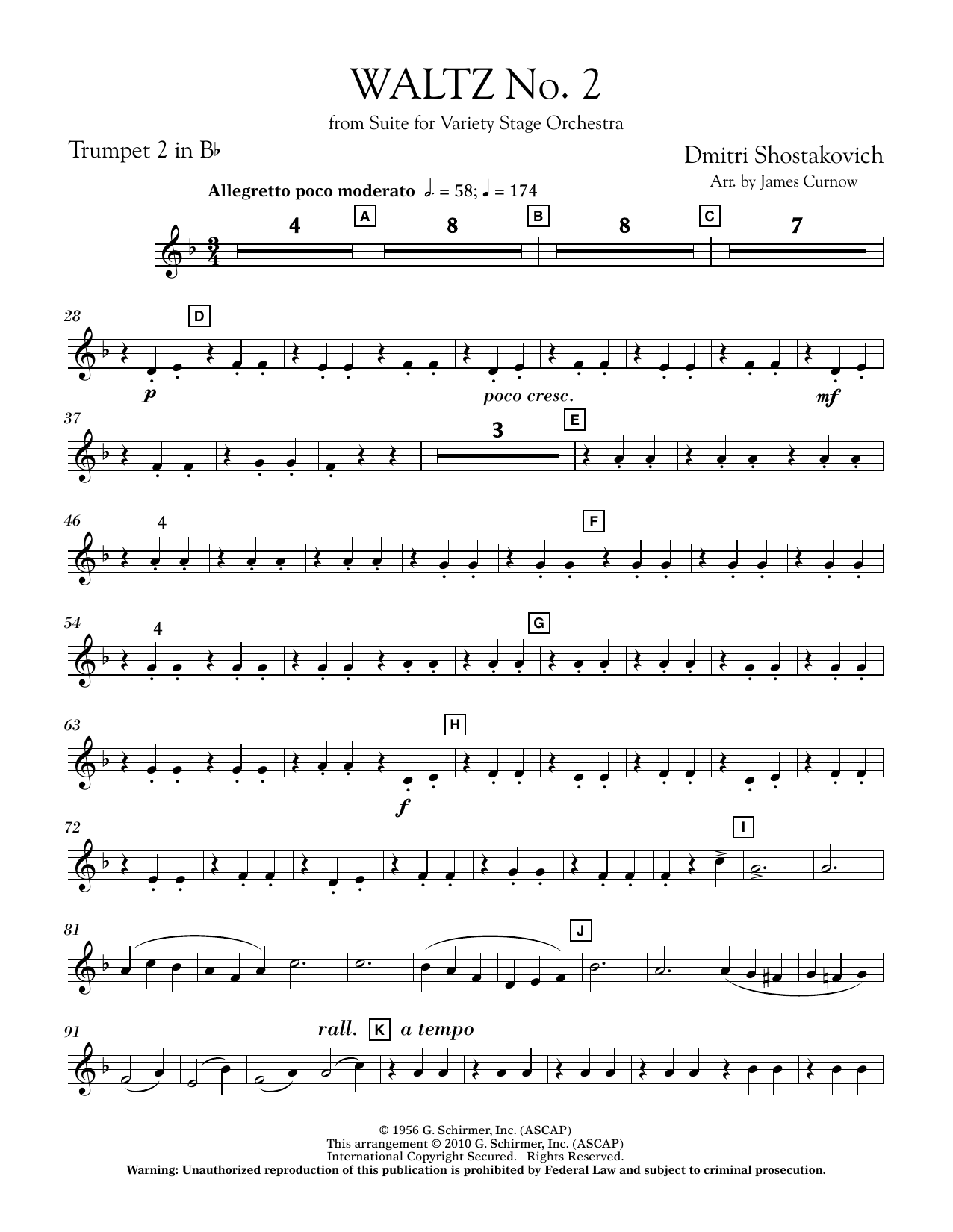 Originally misidentified as the lost Suite for Jazz Orchestra, No. 2, Shostakovich's Suite for Variety Stage Orchestra is notable for the addition of saxophones, accordion and guitar to the typical symphony orchestra instrumentation. The appealing second waltz is in a light classical style and is wonderfully adapted for young concert bands in this arrangement by James Curnow. (Grade 3)