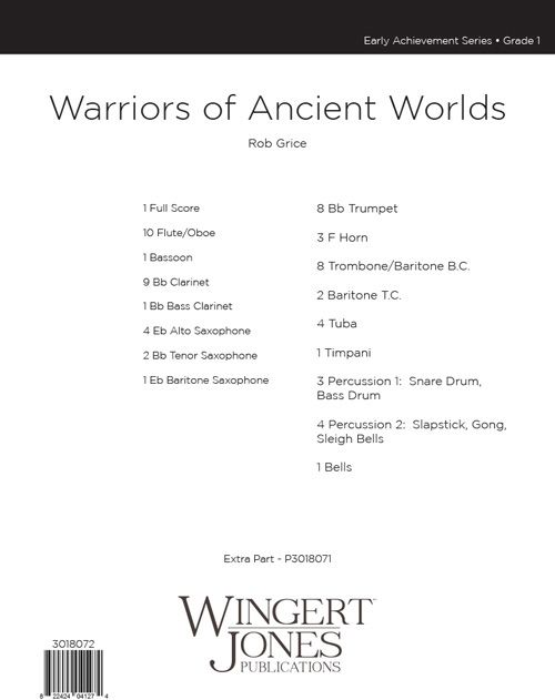 Dieses düstere und phantasievolle Werk für die jüngsten Musiker erinnert an die Geschichten der größten Krieger des Altertums. Ob zum Schutz der Heimat oder zum Aufbau von Imperien - Krieger und Kriegsführung sind so alt wie das geschriebene Wort und seit Jahrhunderten Teil der menschlichen Erfahrung. Dieses angriffslustige Werk, das für die Fähigkeiten von angehenden Musikern gut geeignet ist, wird die kraftvollen Bilder dieser legendären alten Krieger zum Leben erwecken!
