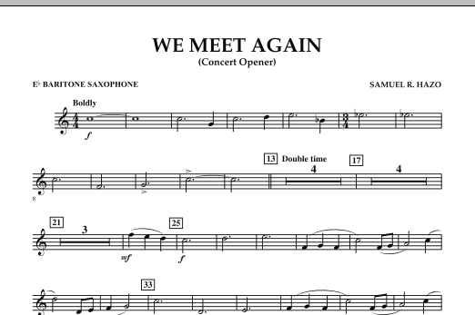We Meet Again is a regal overture for developing bands that evolves from a powerful fanfare into a fugue-like allegro section, building to a glorious ending. This concise concert opener will excite young musicians the first time through the piece, and keep them intrigued with each repetition. Commissioned by the Waller (TX) Jr. High Band and premiered at the 2009 National Concert Band Festival.