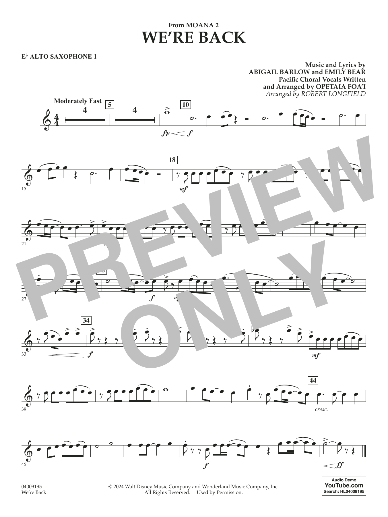 from Moana 2 - Eb Alto Saxophone 1