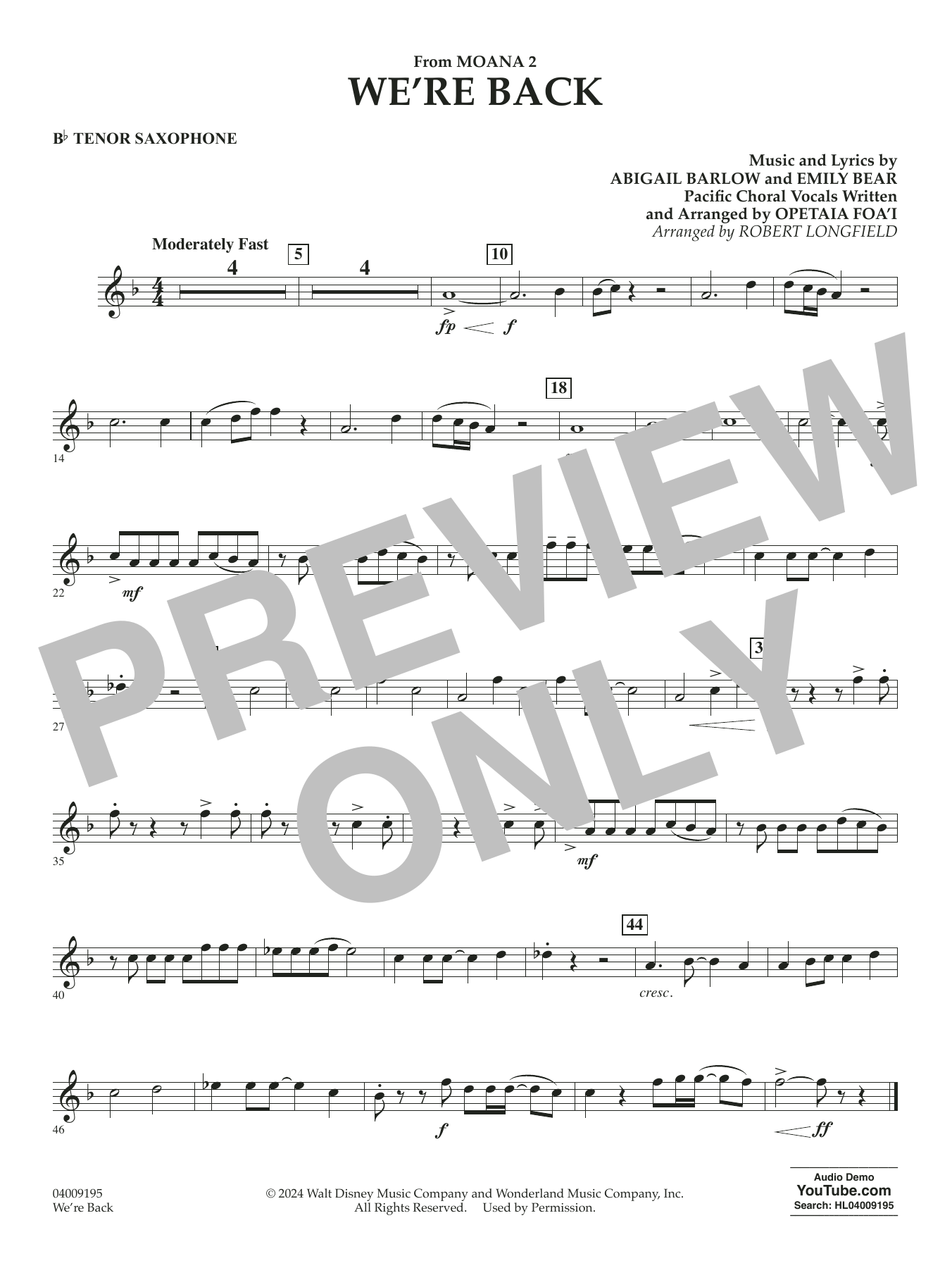 from Moana 2 - Bb Tenor Saxophone