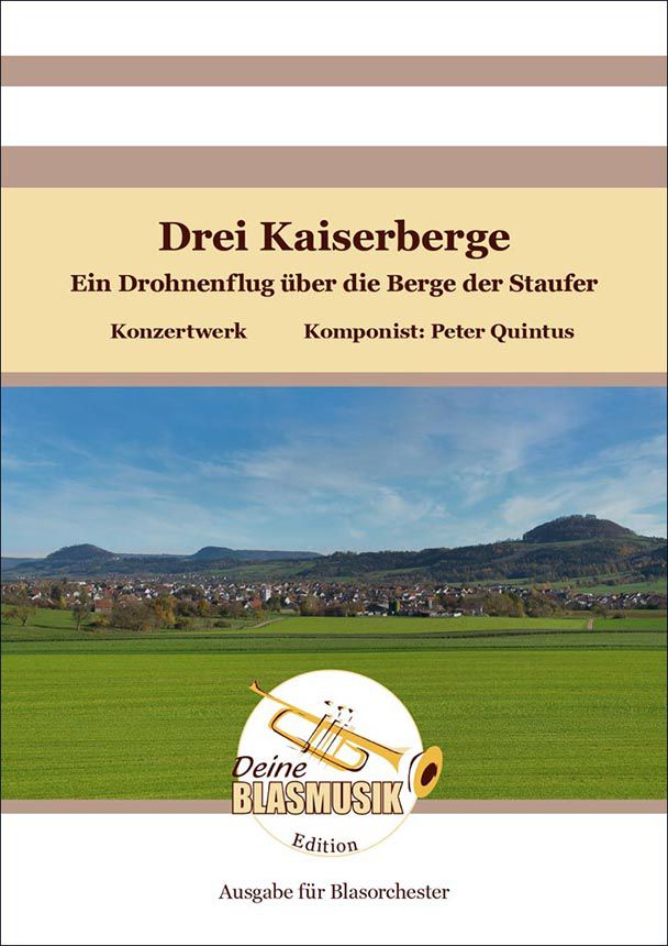 Wenn am Abend die Blasmusik spielt“, dann wird getanzt und gelacht - man ist fröhlich, mit seinen Freunden zusammen und genießt einander bei guter Musik. Der junge Musiker und Komponist Niklas Meier, der sich an für sein Alter untypischen Idolen wie z. B. Paul Lincke orientiert, schuf mit diesem gefühlvollen Walzer ein Werk mit viel Herz und Seele. Orchestriert und ins rechte Licht gerückt wurden die einfühlsamen Melodienbögen von dem bekannten fränkischen Arrangeur Klaus Rambacher, der mit dem Arrangement seinen böhmischen Stil einmal mehr unterstreicht.|||||2:43|de|29,90||7|1||0|3||||0|210 x 297 mm|0|01.07.2023|Art_1463305.JPEG|||EDBM396103.pdf|EDBM396103.mp3|Wenn am Abend die Blasmusik spielt » Blasorchester Noten|Wenn am Abend die Blasmusik spielt » Sheet Music for Concert Band|Wenn am Abend die Blasmusik spielt » Partitions pour orchestre d'instruments à vent|Wenn am Abend die Blasmusik spielt » Spartiti per banda|Wenn am Abend die Blasmusik spielt - Polka - 7er-Besetzung. Noten für Blasorchester. Verlag: Edition Deine Blasmusik. Schnelle Lieferung, jetzt bestellen.|Wenn am Abend die Blasmusik spielt - Polka - 7er-Besetzung. Sheet Music for Concert Band. Publisher: Edition Deine Blasmusik. Order no: EDBM396103. Fast delivery, order now.|Wenn am Abend die Blasmusik spielt. Partitions pour orchestre d'instruments à vent. Maison d'édition: Edition Deine Blasmusik.N° de commande: EDBM396103. Livraison rapide, commandez maintenant.|Wenn am Abend die Blasmusik spielt - Polka - 7er-Besetzung. Spartiti per banda. Casa editrice: Edition Deine Blasmusik. Numero dell'ordine: EDBM396103. Consegna veloce, ordina adesso!|1|||11,00|11,55|11,55|11,55|Blasorchester|CB|Direktion und Stimmen|Director's Score and Parts|Conducteur et set de parties|parte del direttore d'orchestra e set di parti|Blasorchester|Concert Band|Orchestre d'Harmonie|banda|INST|;;;;;;;;;;;;|29915;;;;7300;;;;;;;||3|plk|||692618|0|0||||1||06.07.2023 13:00:02||||0,12|Wenn am Abend die Blasmusik spielt de N. Meier » Partituras para banda|Niklas Meier: Wenn am Abend die Blasmusik spielt - Polka - 7er-Besetzung. Concert Band. Editor: Deine Blasmusik. Número de pedido: EDBM396103. Entrega rápida, haga su pedido ahora!|Partitura de dirección y set de partichelas|Orquesta de viento|396103EDBM396104|Drei Kaiserberge||||Ein Drohnenflug über die Berge der Staufer||||Peter Quintus nimmt uns mit seinem ersten Konzertwerk Drei Kaiserberge" auf einen luftigen Drohnen-Flug über das Land der Staufer. Weithin sichtbar prägen die drei Zeugenberge Stuifen, Rechberg und Hohenstaufen die Heimat des Komponisten, die zwischen Göppingen und Schwäbisch Gmünd, am Rande der schwäbischen Alb liegt. Nach einem fulminanten Start am Fuße des Stuifens schwebt die Drohne hinauf zum Gipfel. Ein kurzer, schneller Flug bringt den Zuhörer dann weiter zum Rechberg, dem Ziel vieler Wallfahrer. Schließlich erreicht die Drohne den Stammberg des Staufergeschlechtes, den Hohenstaufen. Dort wird das Publikum zurück in die Zeit von Kaiser Barbarossa entführt, erlebt das höfische Leben und ist Teil eines rauschenden Festes.