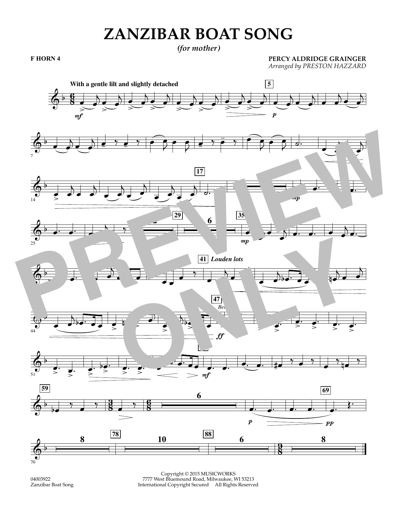 Percy Grainger composed this work for six hands at one piano in 1902, and subsequently he began a version for percussion ensemble that was never completed. Using sketches of this incomplete arrangement, Preston Hazzard has created a unique setting for concert band. The transparent and delicate lilting nature of the original work comes through in this appealing arrangement for winds and percussion. Dur: 4:00
