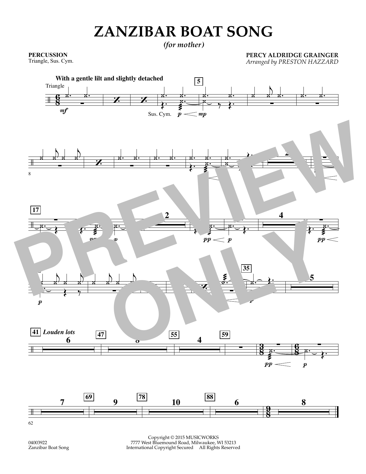 Percy Grainger composed this work for six hands at one piano in 1902, and subsequently he began a version for percussion ensemble that was never completed. Using sketches of this incomplete arrangement, Preston Hazzard has created a unique setting for concert band. The transparent and delicate lilting nature of the original work comes through in this appealing arrangement for winds and percussion. Dur: 4:00