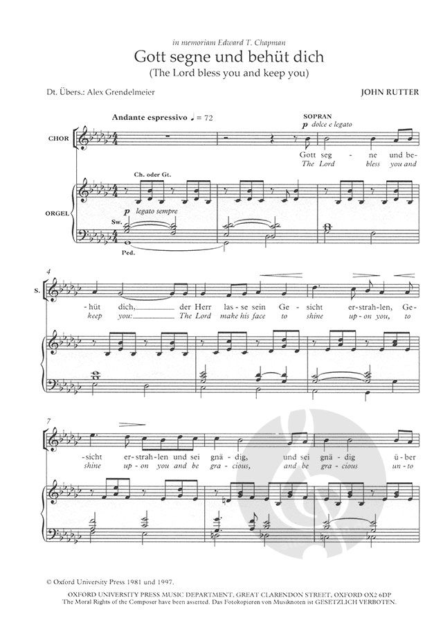 - Gesang (hoch), gemischter Chor (SATB) und Orgel