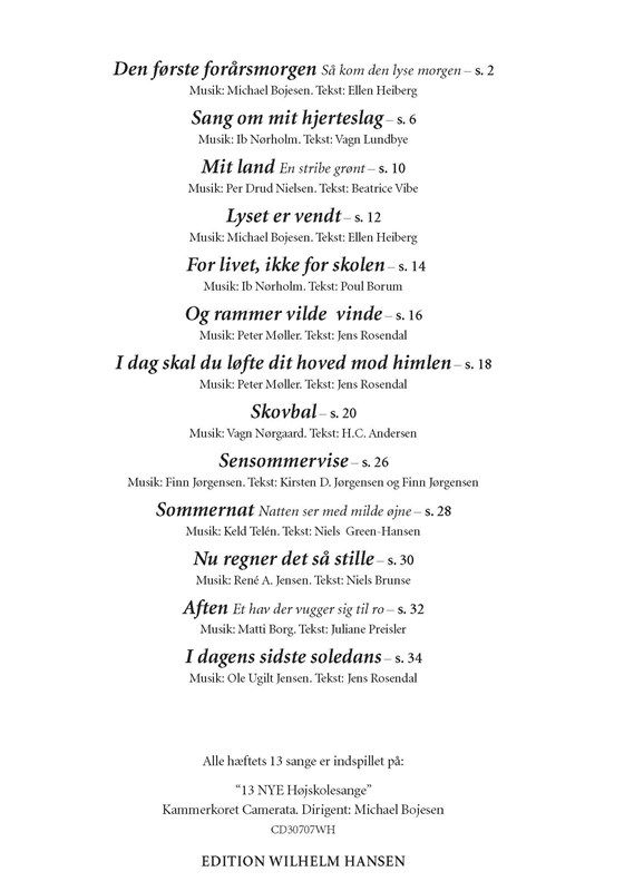 13 NYE Højskolesange - a collection of 13 New Danish Choral Songs arranged for Mixed Choir SATB.