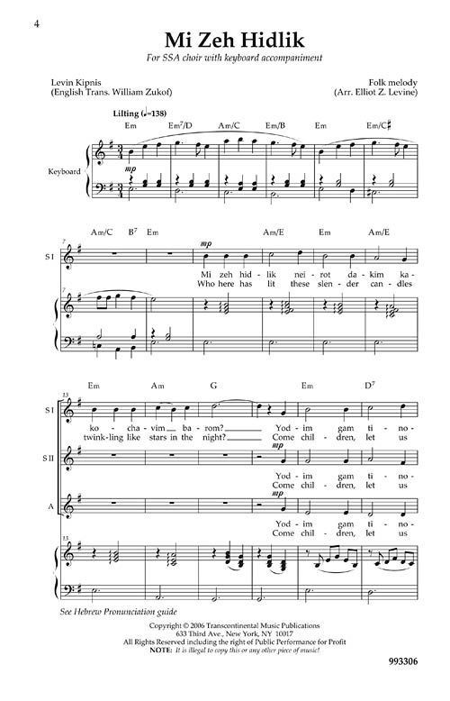 The duo of Elliot Levine and William Zukof, founding members of the Western Wind, supply a delightful suite of arrangements of three songs perfect for your female or childrens' choir's holiday concert...