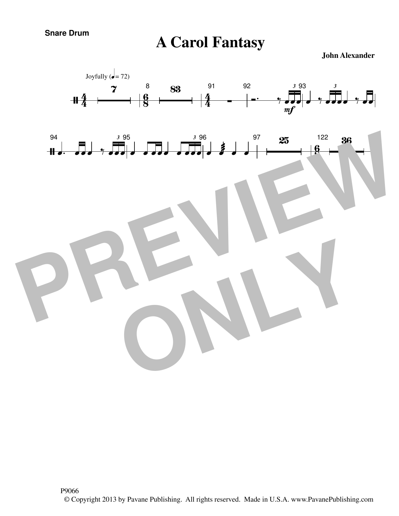 Want a Christmas Concert opener or closer to dazzle your audience? John Alexander's A CAROL FANTASY hits the mark. Never has an arrangement of In Dulci Jubilo been so exhilarating. There's even a dash of Personet Hodie thrown in. The instrumentation for Brass, Timpani, Percussion, Harp and Organ adds power and punch.
