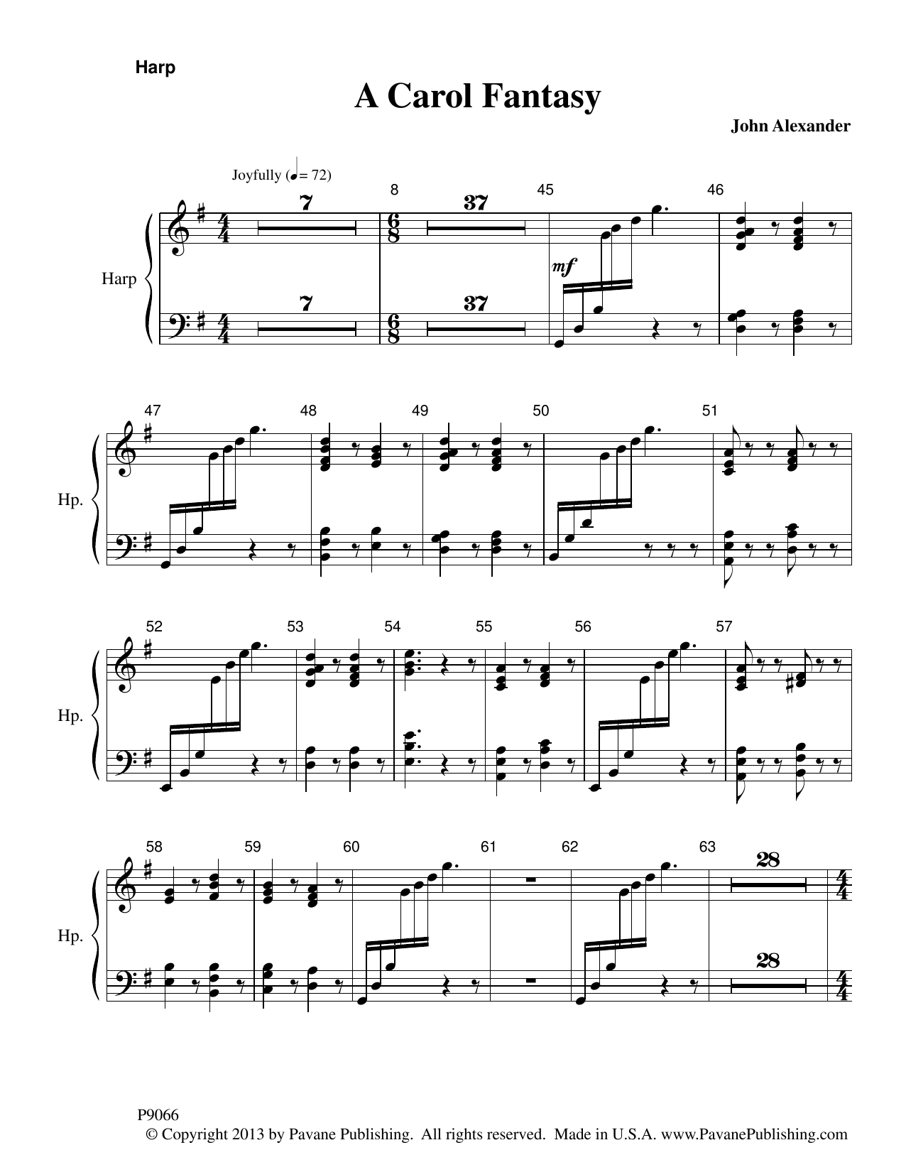 Want a Christmas Concert opener or closer to dazzle your audience? John Alexander's A CAROL FANTASY hits the mark. Never has an arrangement of In Dulci Jubilo been so exhilarating. There's even a dash of Personet Hodie thrown in. The instrumentation for Brass, Timpani, Percussion, Harp and Organ adds power and punch.