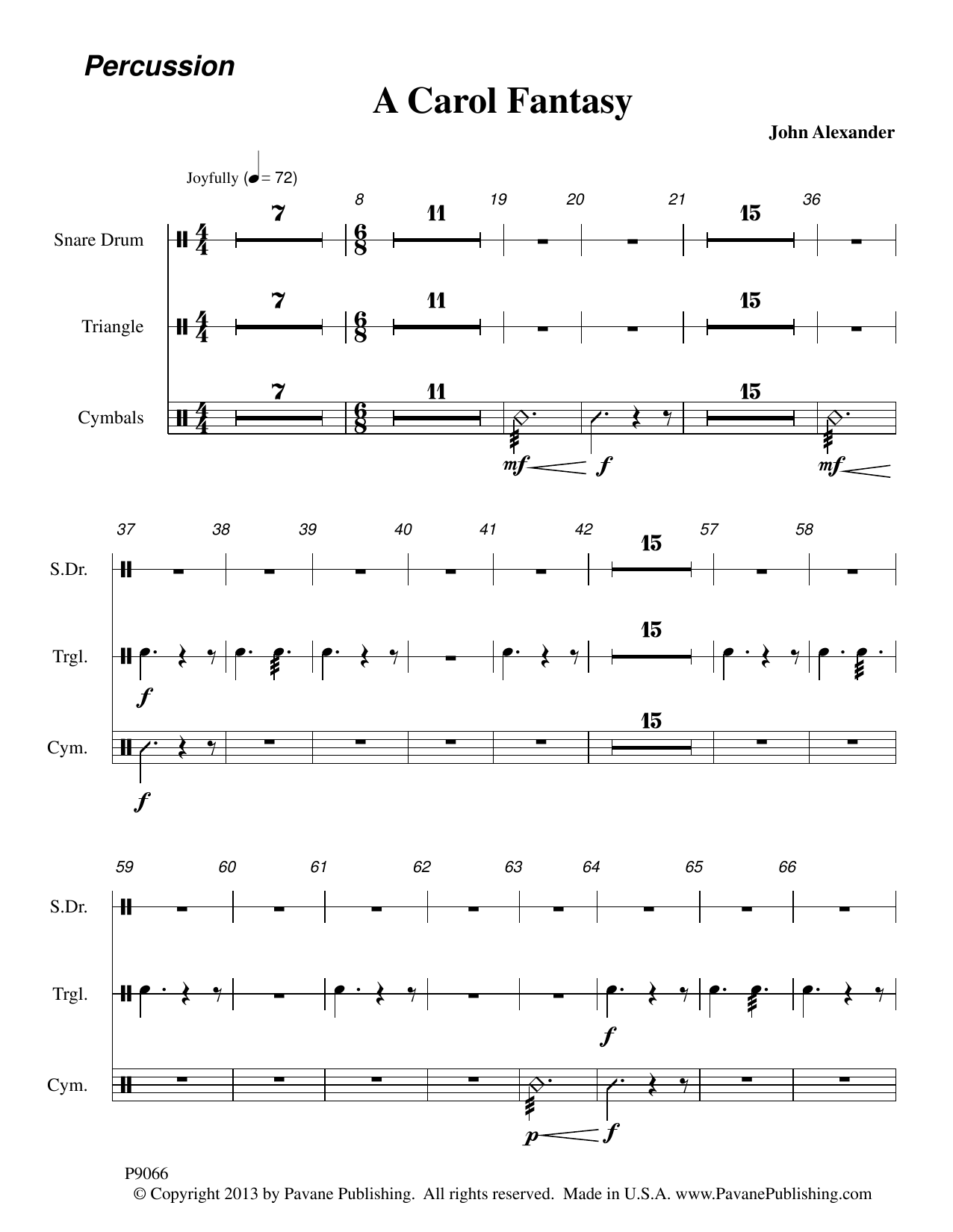 Want a Christmas Concert opener or closer to dazzle your audience? John Alexander's A CAROL FANTASY hits the mark. Never has an arrangement of In Dulci Jubilo been so exhilarating. There's even a dash of Personet Hodie thrown in. The instrumentation for Brass, Timpani, Percussion, Harp and Organ adds power and punch.