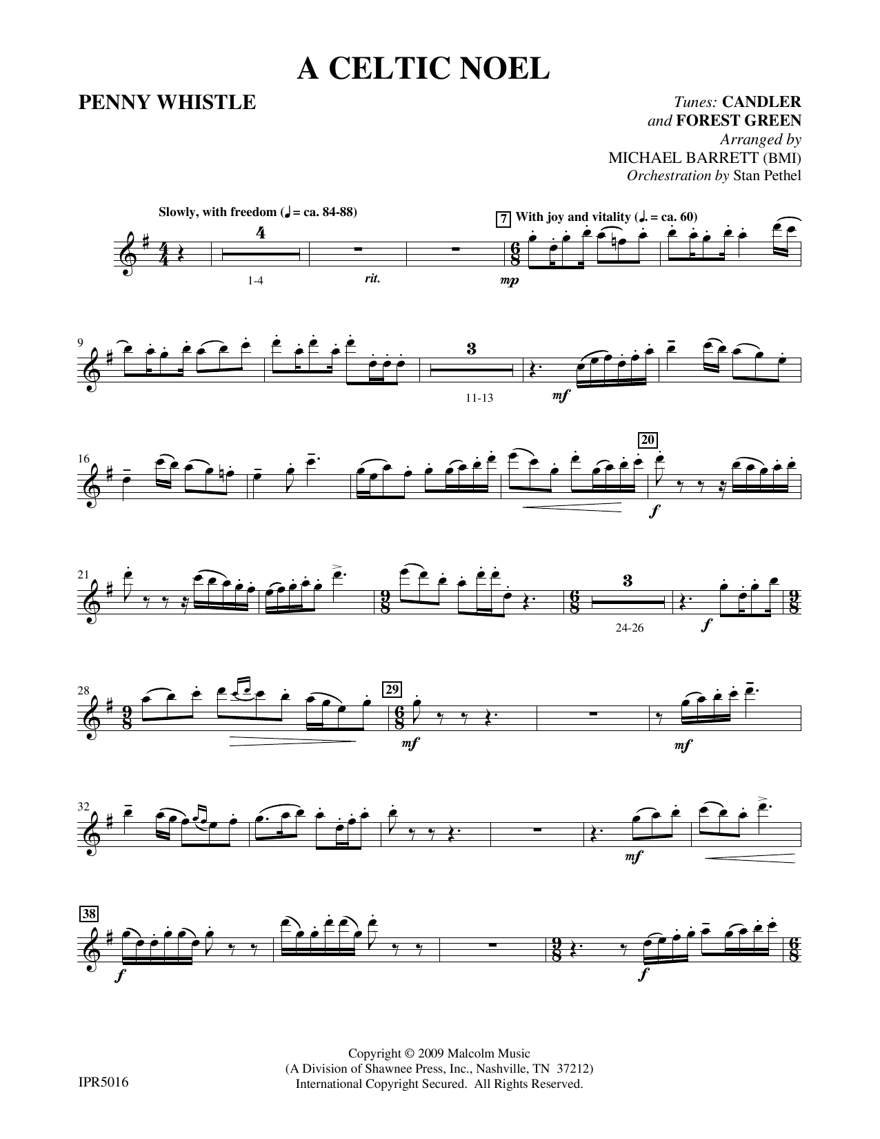 Score and parts for penny whistle (flute), violin, piano, cello and percussion. Orchestration for octavo 35000033. Orchestration arranged by Stan Pethel.