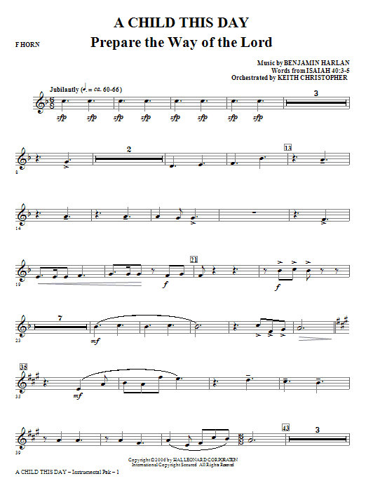 The triumphant opening Prepare the Way of the Lord sets the tone for this joyous and celebratory Christmas cantata. A children's choir is featured in two sections, bringing innocence and simplicity to the telling of the story. It displays some of Harlan's best writing and truly a signature work.