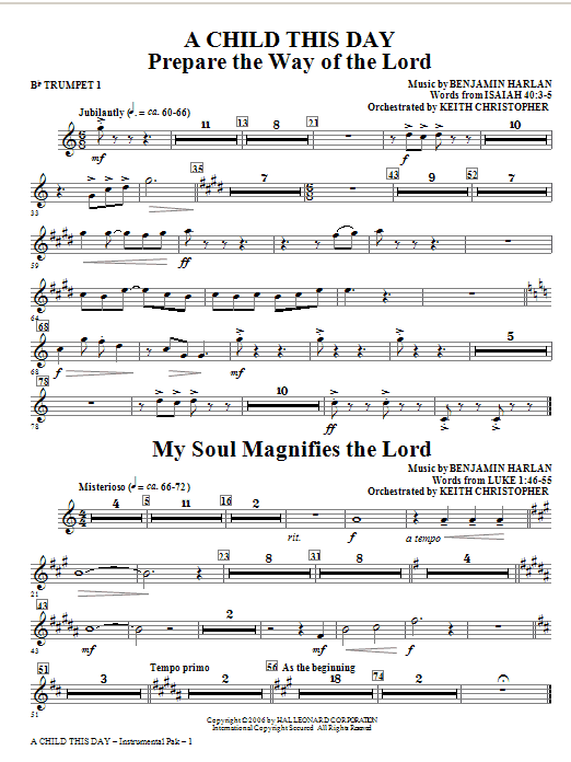 The triumphant opening Prepare the Way of the Lord sets the tone for this joyous and celebratory Christmas cantata. A children's choir is featured in two sections, bringing innocence and simplicity to the telling of the story. It displays some of Harlan's best writing and truly a signature work.