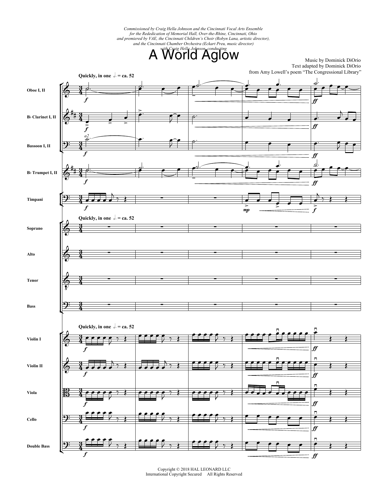 Here is an anthem about inclusivity, equality, and equity of opportunity inherent in the Amy Lowell poem The Congressional Library. Commissioned by the Cincinnati Vocal Arts Ensemble, the Cincinnati Children's Choir, and the Cincinnati Chamber Orchestra as a celebratory statement to rededicate historic Memorial Hall.