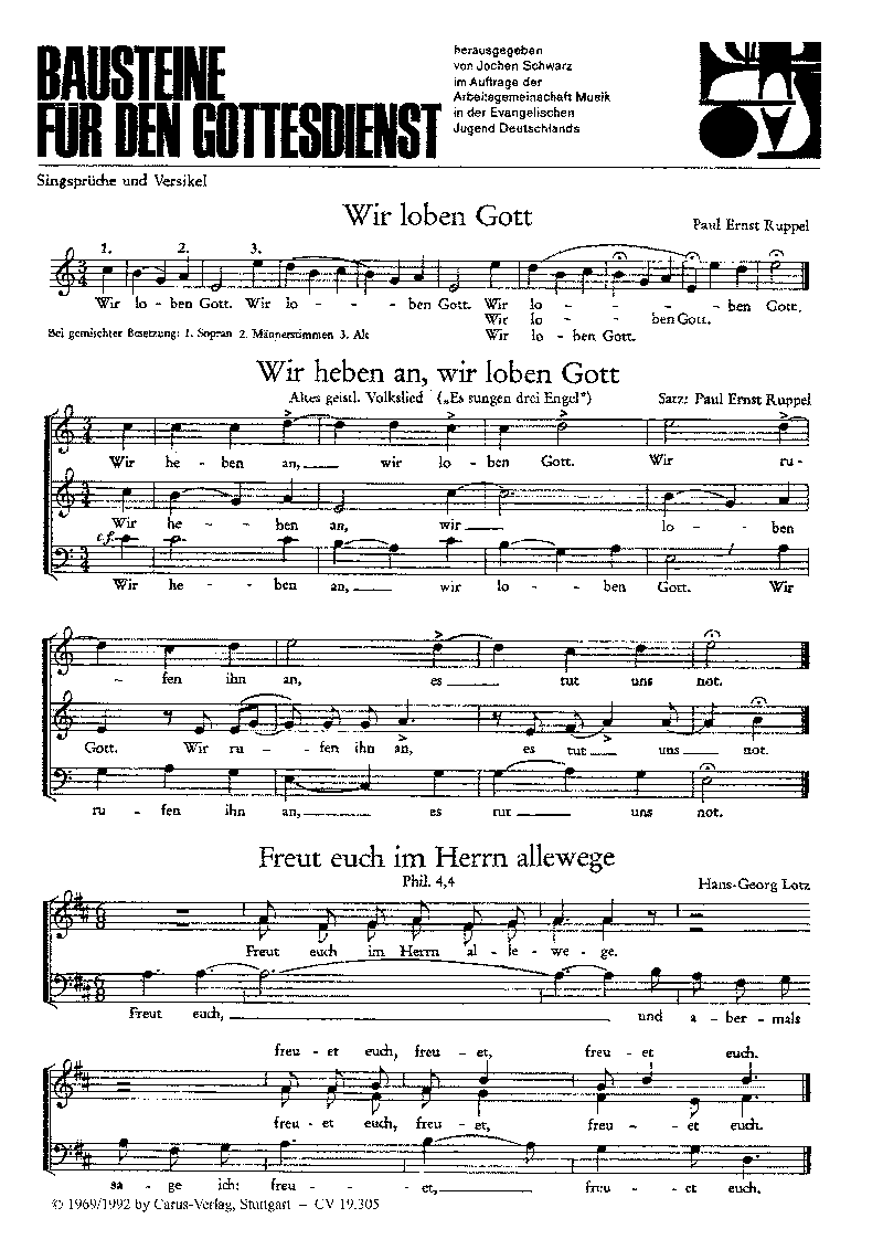 Acht geistliche Lieder von Lotz, Ruppel, Schweizer und Schwarz