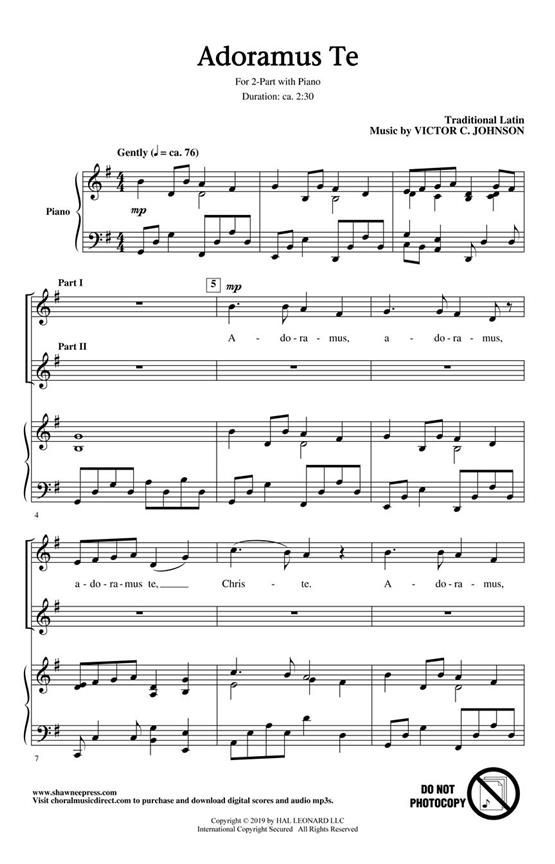 Opening with its simple and poignant melody, Johnson's 2-part setting of the Latin text then divides to independent melodies echoing loveliness with each measure. The middle section moves forward in minor, building to a more dramatic close, then returning to the original 2-part melodies and a quiet ending. A beautiful selection for elementary and treble choirs.