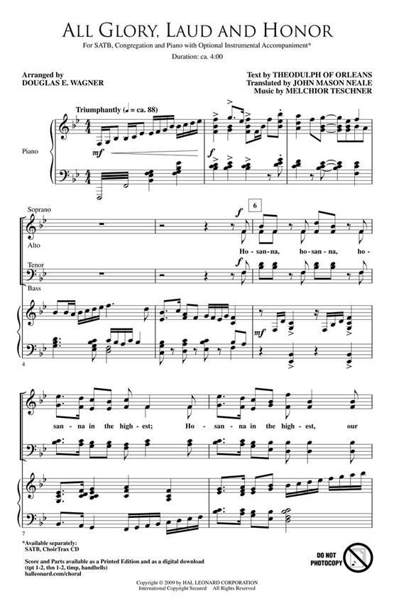 Doug Wagner's outstanding setting of this perennial favorite will add fanfare and excitement to Palm Sunday or any festive worship occaision. Available separately: SATB, ChoirTrax CD. Score and Parts (tpt 1-2, tbn 1-2, timp, handbells) available as a Printed Edition and as a digital download.