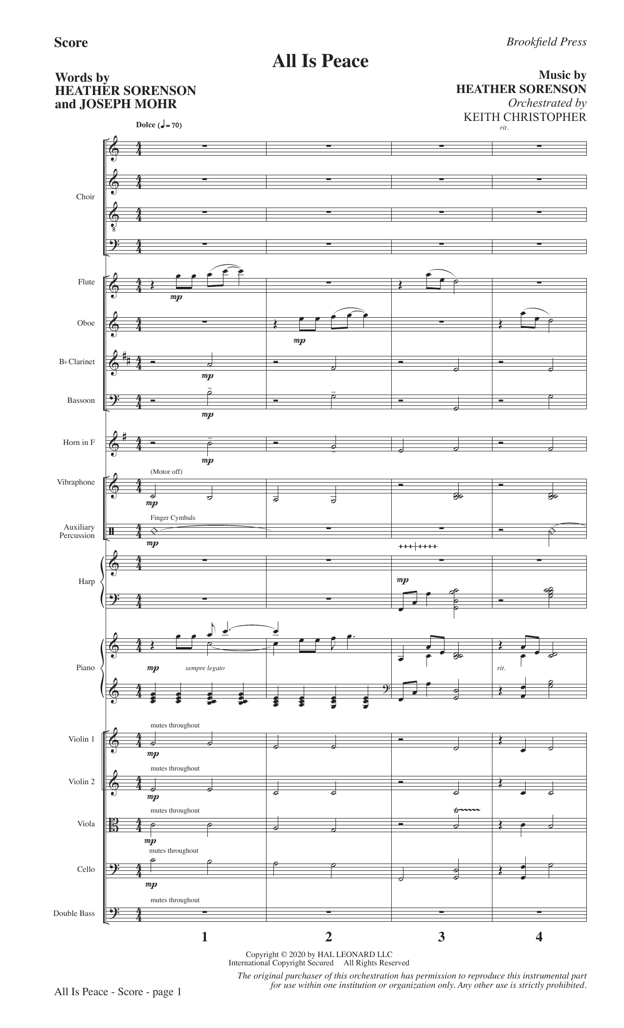 Inspired by the classic carol Silent Night, this newly composed sacred nocturne moves beyond its source material and delivers an exquisite portrait of Christmas grace. A memorable melody propels the piece forward with gentle phrasing while a flowing piano part offers colorful support. The development section offers contrast as the angelic chorus breaks forth with luminous praise. An optional chamber orchestration beautifully wraps this message of hope in a sonic blanket. Very special! Score and Parts (fl, ob, cl, bn, hn, vibes, aux perc, pno, hp, vn 1-2, va, vc, db) available as a digital download.