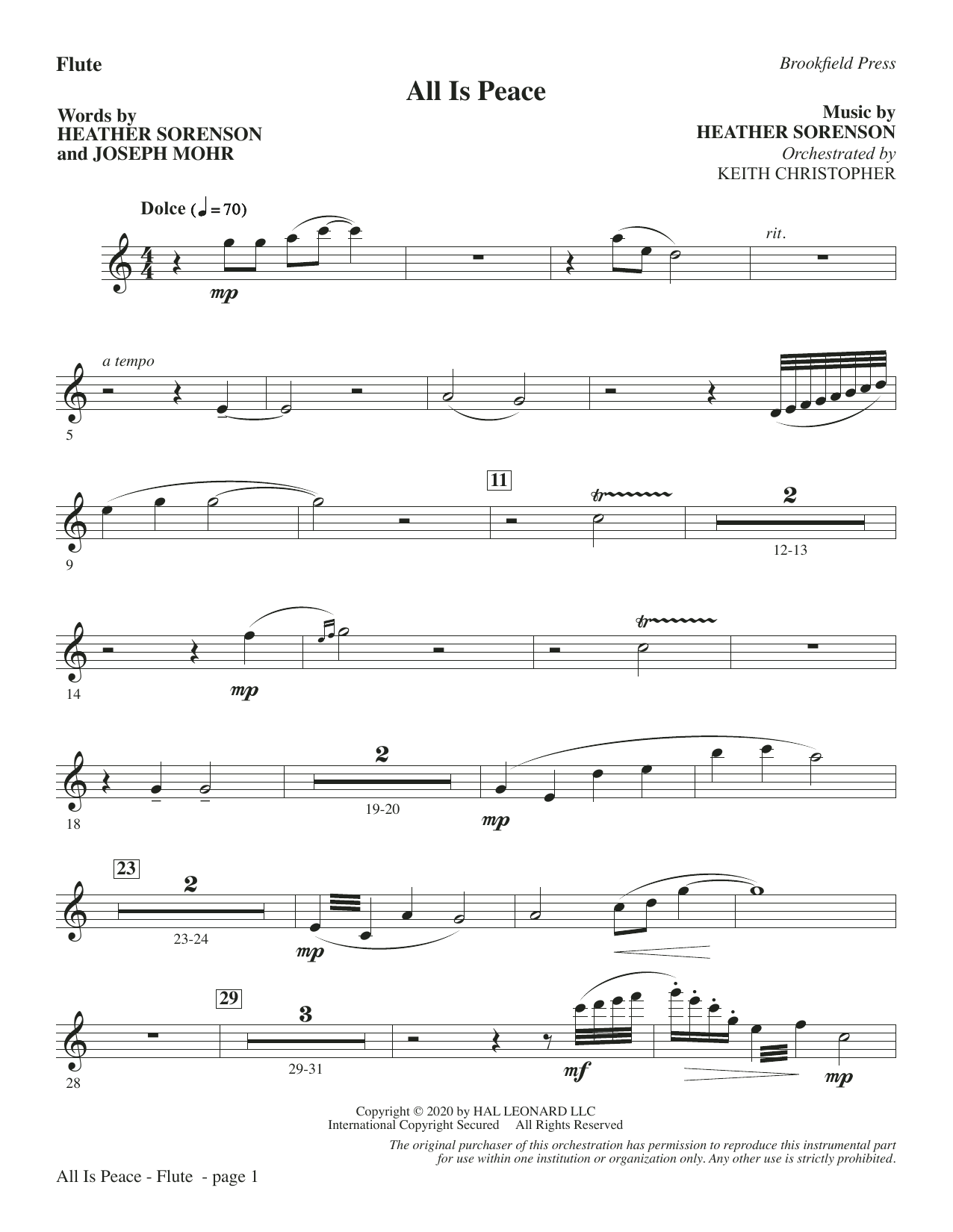 Inspired by the classic carol Silent Night, this newly composed sacred nocturne moves beyond its source material and delivers an exquisite portrait of Christmas grace. A memorable melody propels the piece forward with gentle phrasing while a flowing piano part offers colorful support. The development section offers contrast as the angelic chorus breaks forth with luminous praise. An optional chamber orchestration beautifully wraps this message of hope in a sonic blanket. Very special! Score and Parts (fl, ob, cl, bn, hn, vibes, aux perc, pno, hp, vn 1-2, va, vc, db) available as a digital download.