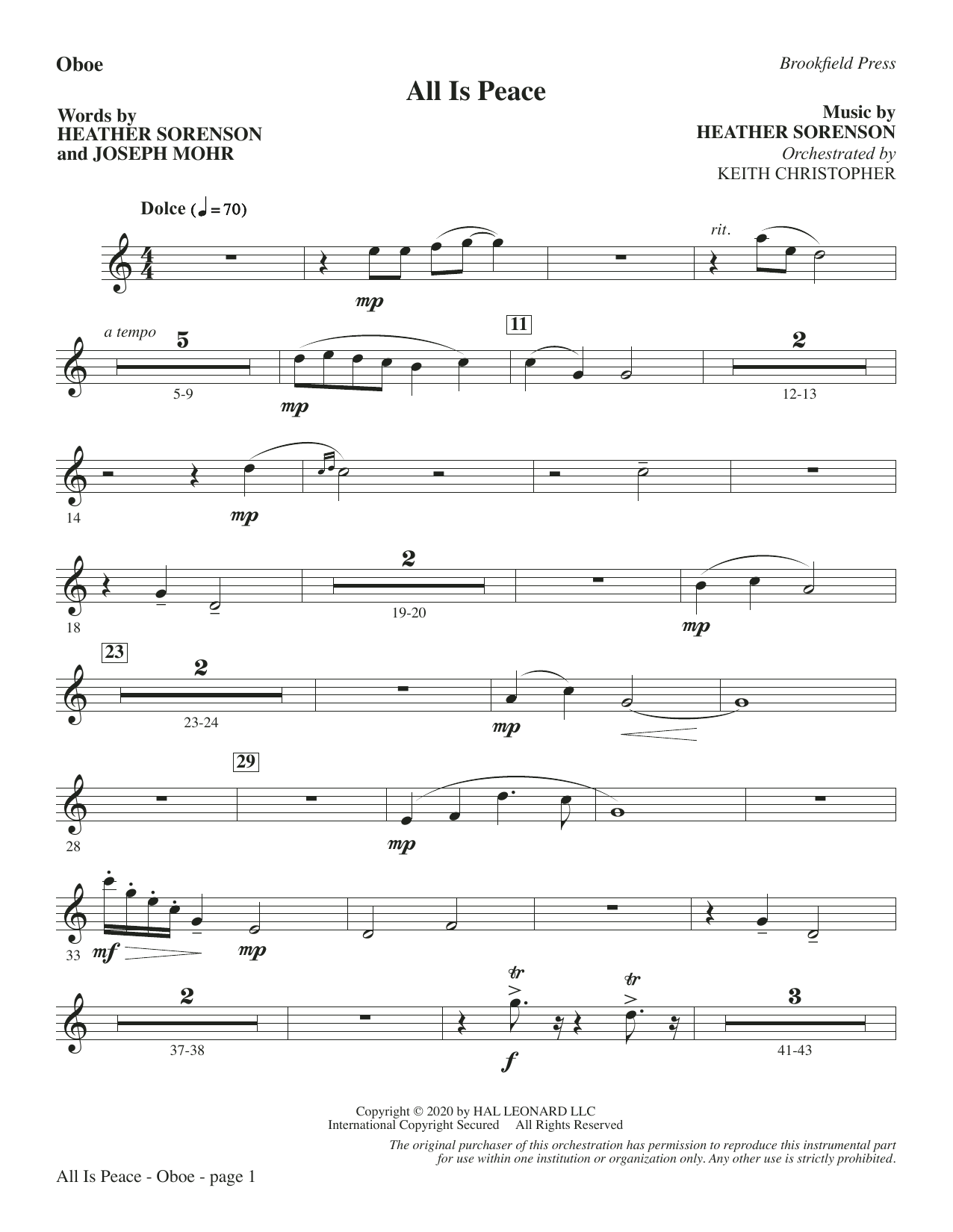 Inspired by the classic carol Silent Night, this newly composed sacred nocturne moves beyond its source material and delivers an exquisite portrait of Christmas grace. A memorable melody propels the piece forward with gentle phrasing while a flowing piano part offers colorful support. The development section offers contrast as the angelic chorus breaks forth with luminous praise. An optional chamber orchestration beautifully wraps this message of hope in a sonic blanket. Very special! Score and Parts (fl, ob, cl, bn, hn, vibes, aux perc, pno, hp, vn 1-2, va, vc, db) available as a digital download.