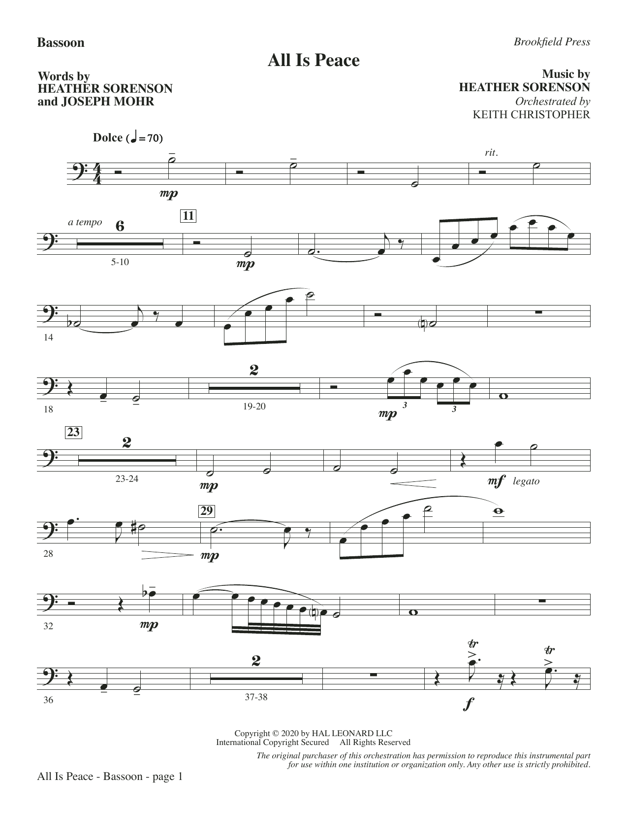 Inspired by the classic carol Silent Night, this newly composed sacred nocturne moves beyond its source material and delivers an exquisite portrait of Christmas grace. A memorable melody propels the piece forward with gentle phrasing while a flowing piano part offers colorful support. The development section offers contrast as the angelic chorus breaks forth with luminous praise. An optional chamber orchestration beautifully wraps this message of hope in a sonic blanket. Very special! Score and Parts (fl, ob, cl, bn, hn, vibes, aux perc, pno, hp, vn 1-2, va, vc, db) available as a digital download.