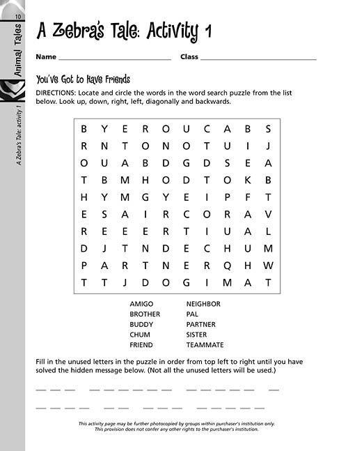 Imagine how different the world looks from a giraffe's perspective. Or the beautiful view a snail enjoys as he moves along at a slow, easy pace. Learn how a zebra discovers life is not a simple as black and white. Young readers (and 'good listeners') in grades 2-5 will meet a host of animal friends in this character-building collection of 8 interactive stories, songs and activities. For maximum learning and participation, a variety of reading and performance options are included to involve from one reader to a whole group. The life lessons from the animal tales are reinforced with songs, activities and puzzles. And everything is reproducible! A recording of the stories and songs is also available for loads of listening and interactive fun! Available: Teacher Edition (with reproducible pages), Performance/Accompaniment CD, Classroom Kit (Teacher & P/A CD). For Gr. 2-5.
