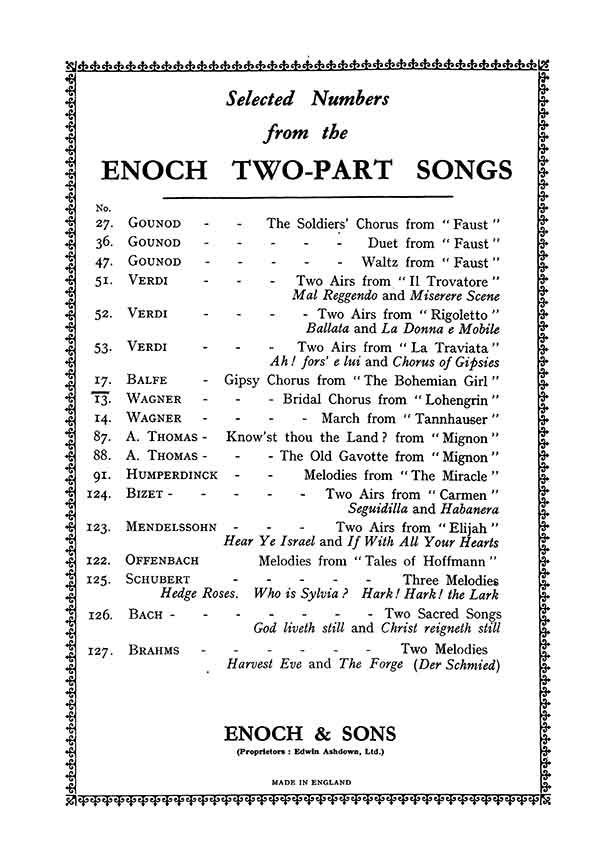 Balfe, M Gypsy Chorus From Bohemian Girl 2-Part