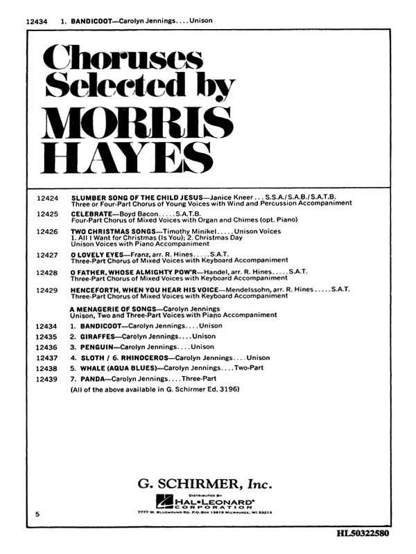 Bandicoot Unison 2-3 Part / Piano No.1 From Menagerie Of Songs