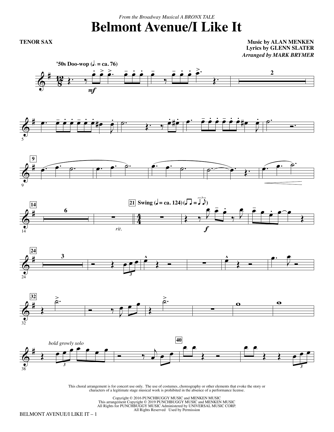 from 'A Bronx Tale' - Tenor Sax