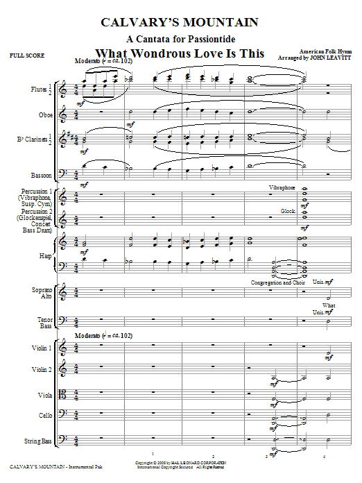 John Leavitt has created a cantata designed for Lent and Holy Week. Titles include: What Wondrous Love Is This, Were You There, Surely He Has Borne Our Griefs, Alas! And Did My Savior Bleed and Jesus Died on Calvary's Mountain. Available separately: SATB, ChoirTrax CD, Chamnber Orchestra score and parts (fl 1/2, ob, cl 1/2, bn, perc 1 and 2, hp, str:88442), Preview CD, Preview Pak. Duration: ca. 30:00.