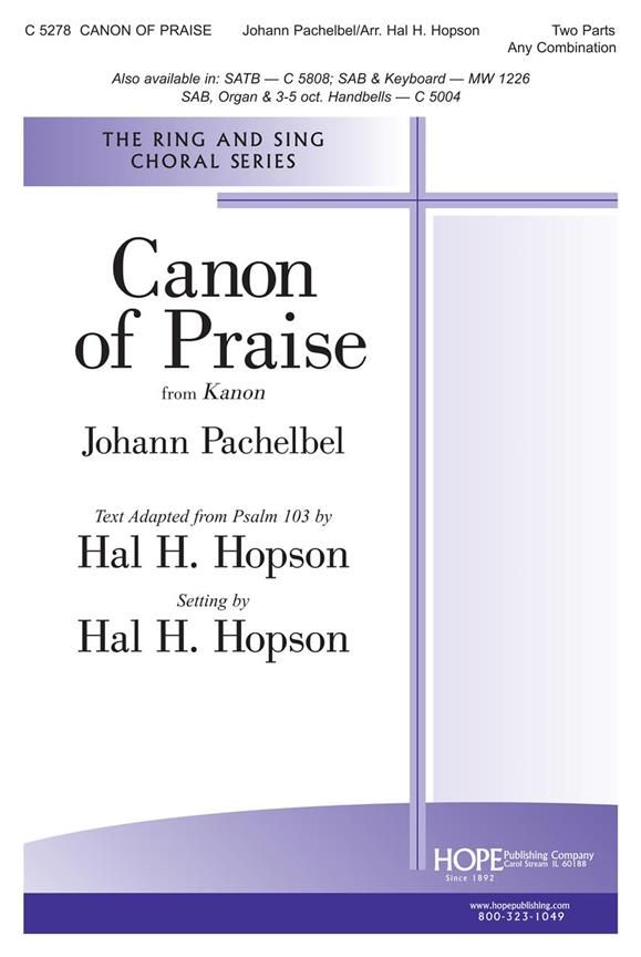 Hal Hopson's choral setting of Johann Pachelbel's Canon, skillfully combined with a lovely text adapted from Psalm 103, is one of the all-time 'classics' in the Hope catalog. Newly arranged for Two-Part voices and keyboard, this new edition retains the beauty of the original and is accessible to all choirs.