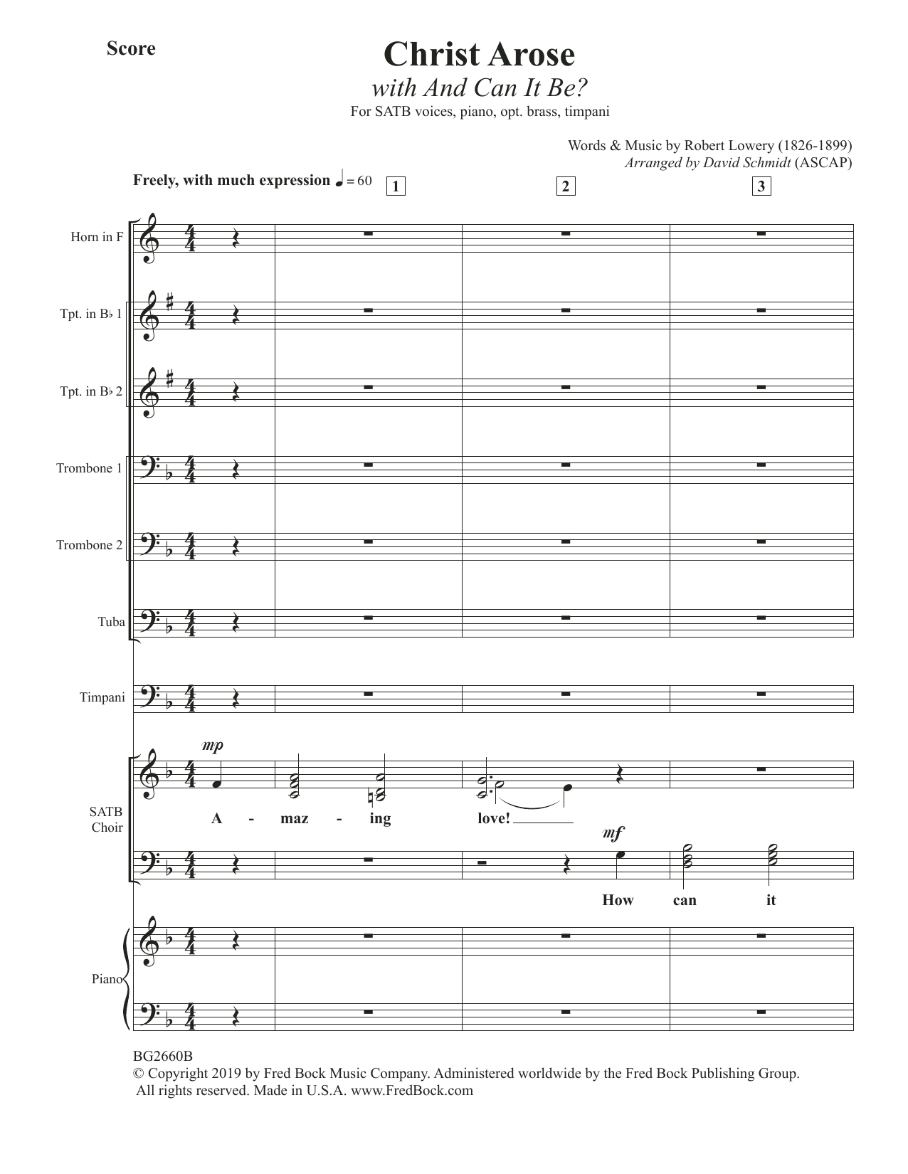 Diese Osterhymne beginnt mit einem A-cappella-Statement aus And Can It Be und geht über in die erste Strophe des Lowry-Hymnus Christ Arose. Die Blechbläser warten geduldig, während sich das Stück mit Keyboard-Begleitung aufbaut. Schließlich regt sich das Schlagzeug, und bald erklingen die unteren Blechbläser, und die oberen Bläser stimmen ein, während alles, was eine Stimme hat, verkündet: Er ist auferstanden! Mittlerer Schwierigkeitsgrad.