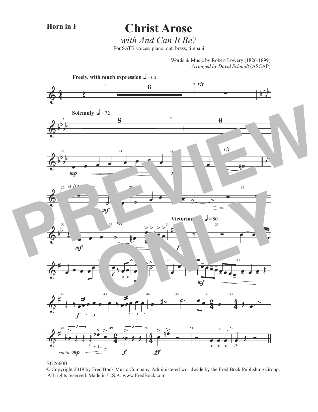 Diese Osterhymne beginnt mit einem A-cappella-Statement aus And Can It Be und geht über in die erste Strophe des Lowry-Hymnus Christ Arose. Die Blechbläser warten geduldig, während sich das Stück mit Keyboard-Begleitung aufbaut. Schließlich regt sich das Schlagzeug, und bald erklingen die unteren Blechbläser, und die oberen Bläser stimmen ein, während alles, was eine Stimme hat, verkündet: Er ist auferstanden! Mittlerer Schwierigkeitsgrad.