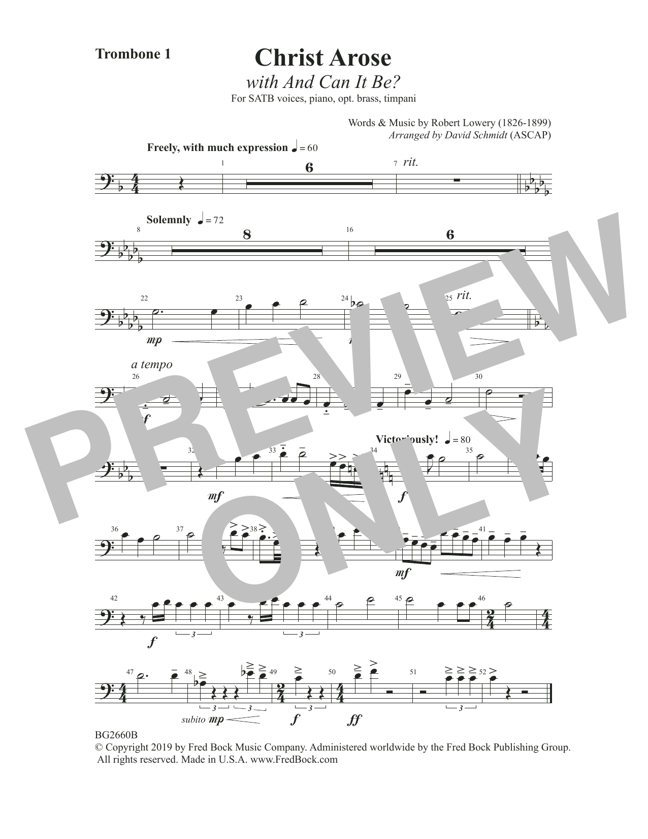 Diese Osterhymne beginnt mit einem A-cappella-Statement aus And Can It Be und geht über in die erste Strophe des Lowry-Hymnus Christ Arose. Die Blechbläser warten geduldig, während sich das Stück mit Keyboard-Begleitung aufbaut. Schließlich regt sich das Schlagzeug, und bald erklingen die unteren Blechbläser, und die oberen Bläser stimmen ein, während alles, was eine Stimme hat, verkündet: Er ist auferstanden! Mittlerer Schwierigkeitsgrad.