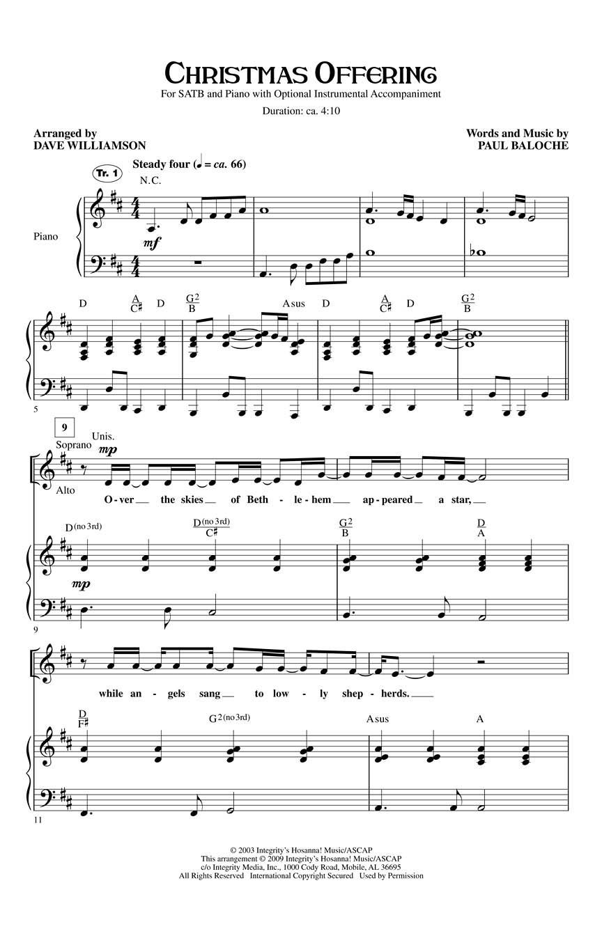 The Christmas version of this popular Paul Baloche song will provide a tender moment of worship in your December services. Available separately: SATB, CD Accompaniment Trax, Orchestration. Duration: ca. 4:10.