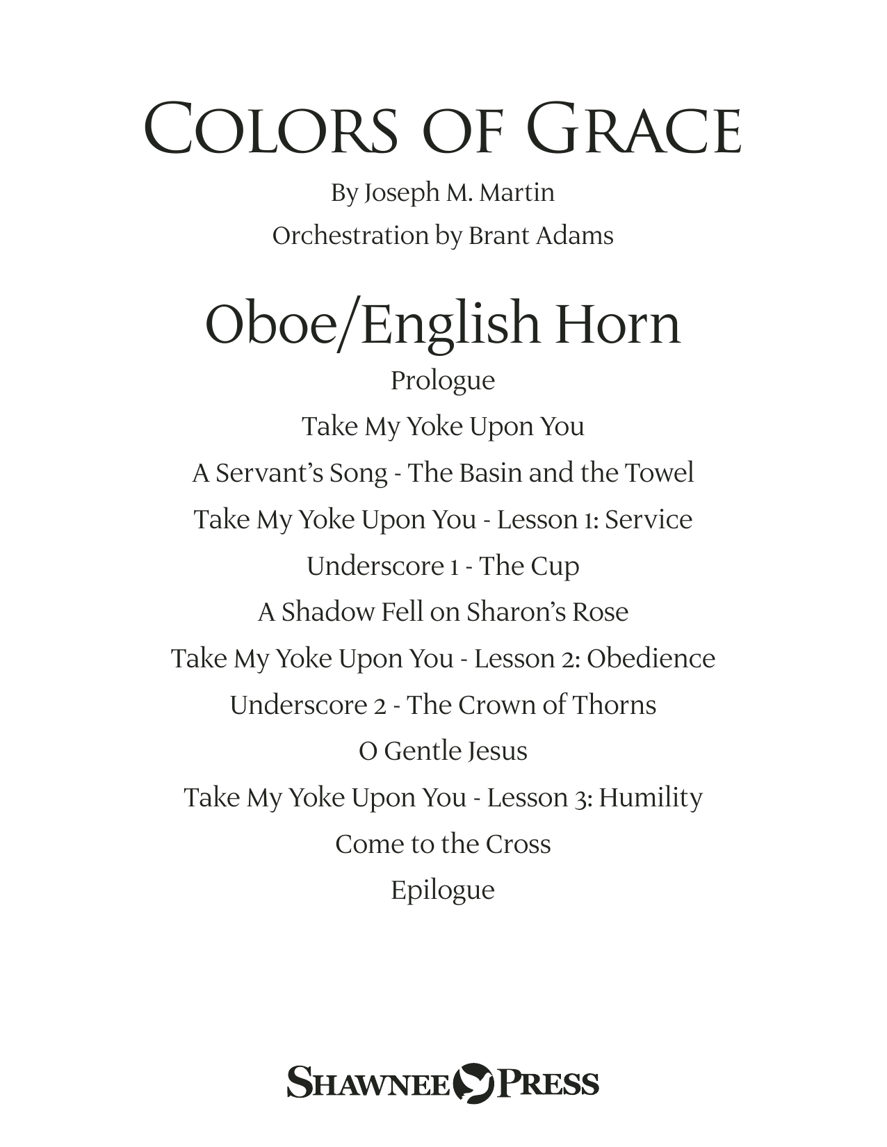 Presented in a new edition for the 20th anniversary of its publication, this seminal cantata is rich with musical and spiritual potential. Using simple symbols of worship, expressive music and a sensitive narration by Pamela Stewart, this work is an unforgettable experience for Holy Week. A new SAB version and special anniversary consort orchestration join the original products to open the work to groups of every size. Only 30 minutes long, the cantata is easily learned and with Brant Adams' gentle yet dramatic orchestrations, Colors of Grace will become a treasured part of your Holy Week commemoration. Songs include: Prologue - Take My Yoke Upon You - A Servant's Song (The Basin and Towel) - Take My Yoke Upon You (Lesson 1: Service) - Underscore: The Cup - A Shadow Fell on Sharon's Rose - Take My Yoke Upon You (Lesson 2: Obedience) - Underscore: The Crown of Thorns - O Gentle Jesus - Take My Yoke Upon You (Lesson 3: Humility) - Come to the Cross - Epilogue. Score and Parts for Orchestra (fl 1-2, ob/eng hn, cl 1-2, bn, hn 1-2, timp/bass dm, perc 1-2, hp, pno, vn 1-2, va, vc, db) available as Printed Edition and as a digital download. Consort Score and Parts (fl, cl, hn, perc, pno, hp, vn, vc) available as a digital download.