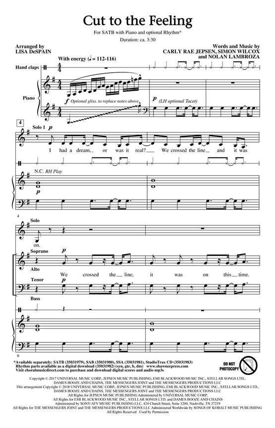 Canadian singer Carly Rae Jepsen recorded this tune that was named one of the best songs of 2017. Lisa DeSpain creates a choral for mixed as well as women's groups and captures the pop sound with solid musical writing. Instrumental parts are also available.