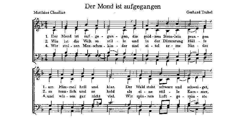 Der Mond ist aufgegangen; Müde bin ich; Spiele, kleine Flöte