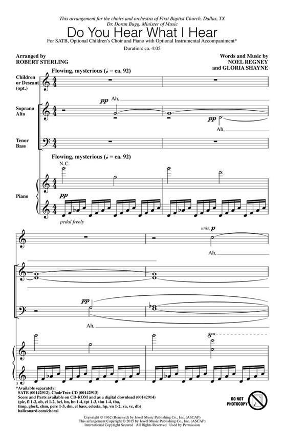Written in 1962 during the Cuban Missile crisis, this modern mega-hit is a plea for peace and an affectionate portrait of the spirit of Christmas. The arranger brings a sense of cinematic scope and theatrical flair to this fully orchestrated version. The choral writing is surprisingly approachable, yet the sonic impact is significant and fulfilling. A brief performance time but a lasting effect is achieved with brilliant pacing and a daring crescendo. A new classic!