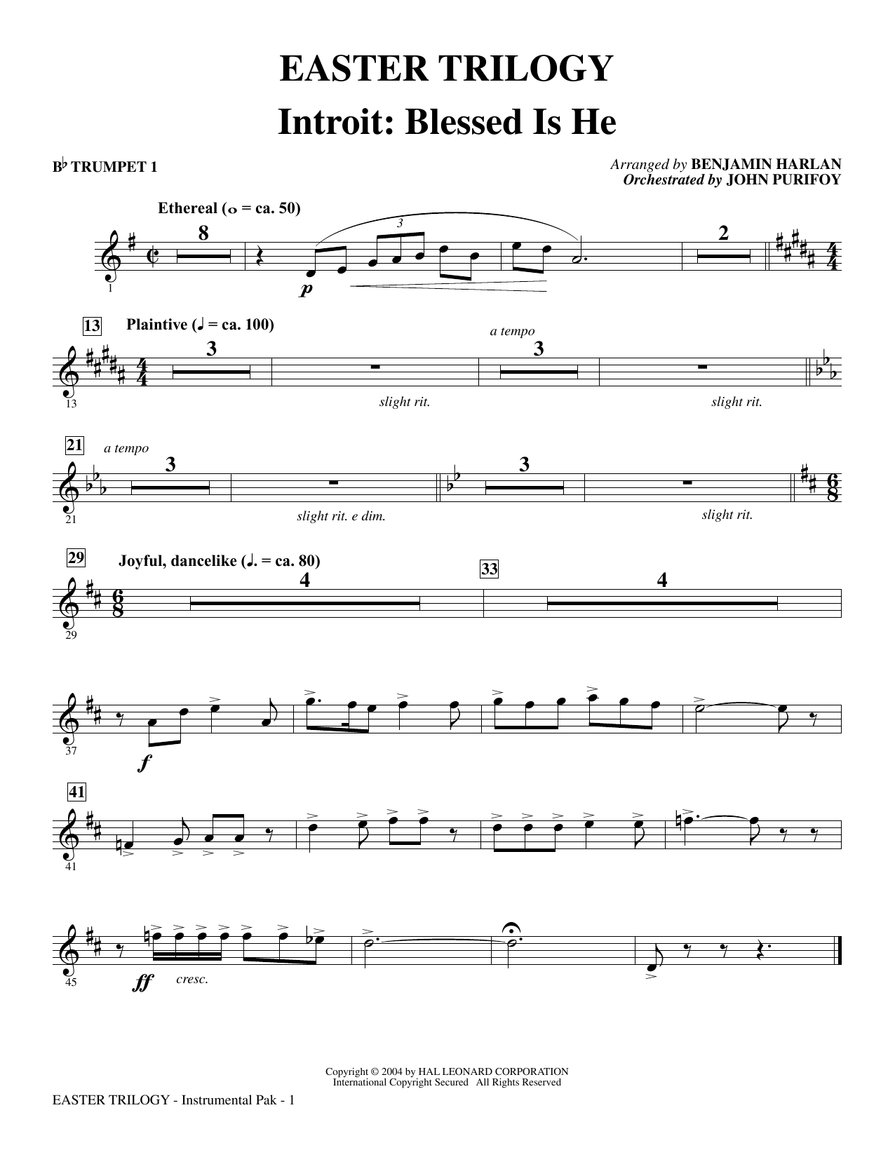 Three distinctive sections (Preparation, Prayer and Promise) are woven together with compelling narrative to create a moving work for SATB choir, congregation and narrators. Beloved Easter hymns, masterworks and timeless new songs are included, all arranged with Benjamin Harlan's artful touch, making this a cantata which will focus and heighten your church's Easter worship celebration. Instrumental Pak (Full Orch.) contains score and parts for: Flute; Oboe; Horn; Trumpet 1, 2; Trombone; Tuba; Percussion; Timpani; Violin 1, 2; Viola; Cello; and String Bass.