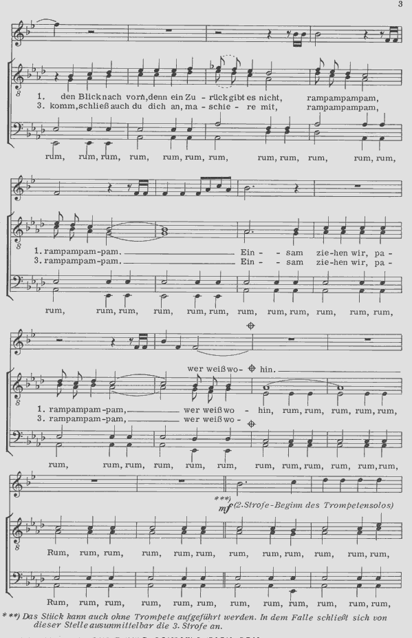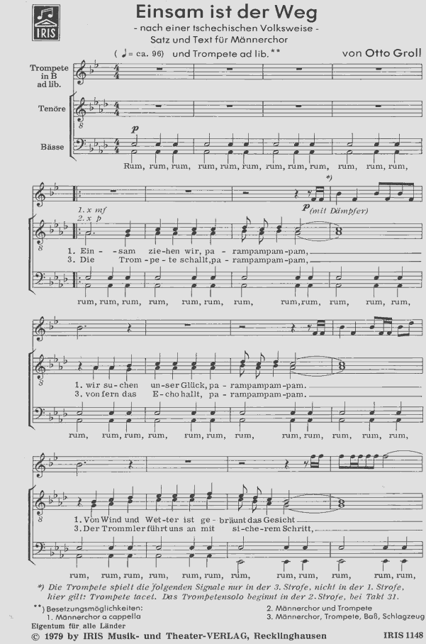 nach einer tschechischen Volksweise a cappella oder mit Trompeten-Solo ad lib. oder mit Trompete, Bass, Schlagzeug