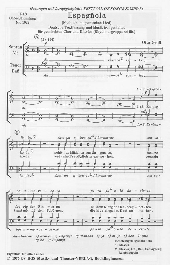 nach einem spanischen Lied (mit dt. und span. Text) mit Klavier oder zus. mit Gitarre, Bass, Schlagzeug