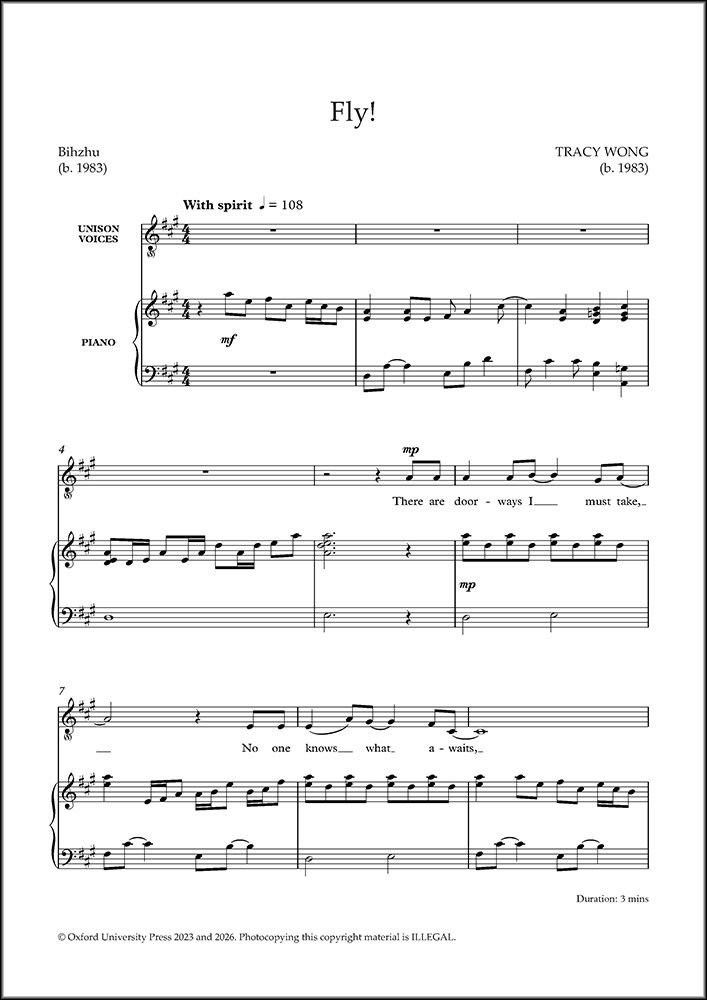 Presented here in a version for unison voices (with optional second part), this engaging, upbeat work sets a text by the Malaysian singer Bihzhu celebrating the collective excitement in exploring the unknown. The piano brings a hint of the Malaysian sound-world through its use of fourths.