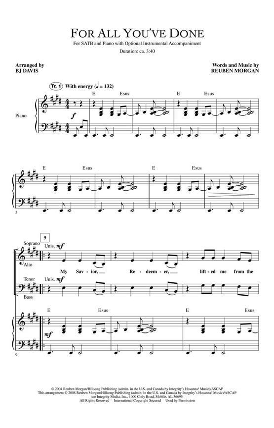 This song has such a powerful statement lyrically, along with a melody line that is so catchy and easy to sing, that your choir will love making this statement of praise to your congregation, as arranged by BJ Davis. Available separately: SATB, CD Accompaniment Trax, Orchestration. Duration: ca. 3:40.