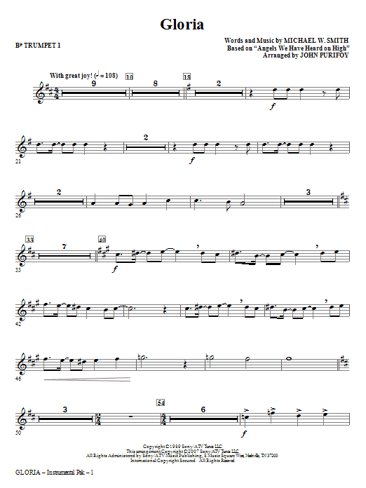 Michael W. Smith's Christmas classic pairs Angels We Have Heard on High with a wonderfully original treatment of the angels' message, Gloria in Excelsis Deo! Beginning quietly with the Gloria lyrics, this fully orchestrated choral setting grows into an exuberant anthem of joy and praise for the newborn king! Performance Time: Approx. 3:40. Available for SATB, SAB, ChoirTrax CD and Instrumental ePak (Score and Parts for Flute, Oboe, Trumpet 1, 2 & 3, Trombone 1 & 2, Violin 1 & 2, Viola, Cello, Bass)