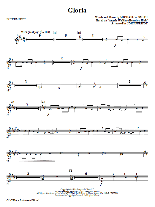 Michael W. Smith's Christmas classic pairs Angels We Have Heard on High with a wonderfully original treatment of the angels' message, Gloria in Excelsis Deo! Beginning quietly with the Gloria lyrics, this fully orchestrated choral setting grows into an exuberant anthem of joy and praise for the newborn king! Performance Time: Approx. 3:40. Available for SATB, SAB, ChoirTrax CD and Instrumental ePak (Score and Parts for Flute, Oboe, Trumpet 1, 2 & 3, Trombone 1 & 2, Violin 1 & 2, Viola, Cello, Bass)