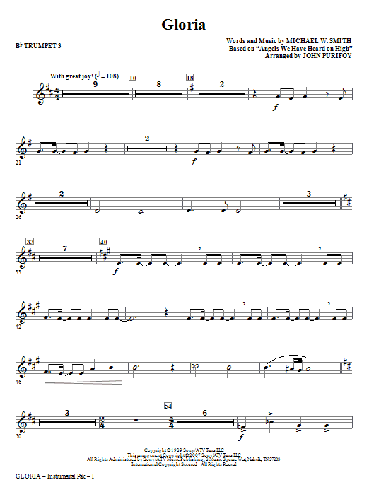 Michael W. Smith's Christmas classic pairs Angels We Have Heard on High with a wonderfully original treatment of the angels' message, Gloria in Excelsis Deo! Beginning quietly with the Gloria lyrics, this fully orchestrated choral setting grows into an exuberant anthem of joy and praise for the newborn king! Performance Time: Approx. 3:40. Available for SATB, SAB, ChoirTrax CD and Instrumental ePak (Score and Parts for Flute, Oboe, Trumpet 1, 2 & 3, Trombone 1 & 2, Violin 1 & 2, Viola, Cello, Bass)