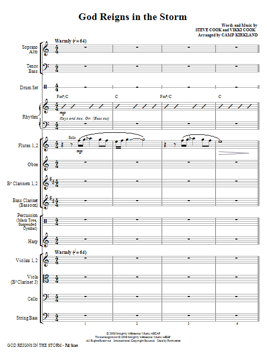 This arrangement carries a moving statement of the strength of God as we struggle with the daily events of our lives. Medium easy in difficulty for choirs of all sizes. Available separately: SATB, Orchestration, (fl 1, 2, ob, cl 1, 2, bcl/bn, perc, hp, rhythm, vn1, vn 2, va [=cl 3], vc, b, keyboard string reduction), CD Accompaniment Trax. Duration: ca. 4:50