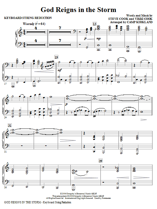 This arrangement carries a moving statement of the strength of God as we struggle with the daily events of our lives. Medium easy in difficulty for choirs of all sizes. Available separately: SATB, Orchestration, (fl 1, 2, ob, cl 1, 2, bcl/bn, perc, hp, rhythm, vn1, vn 2, va [=cl 3], vc, b, keyboard string reduction), CD Accompaniment Trax. Duration: ca. 4:50