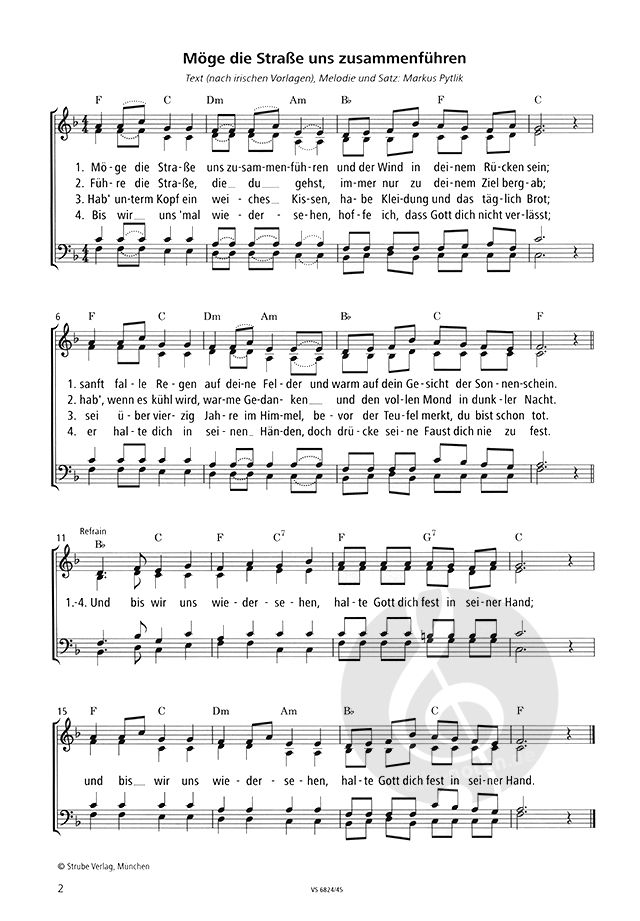 'May the Road rise up to meet You' für vierstimmigen gemischten Chor - englische und deutsche Version